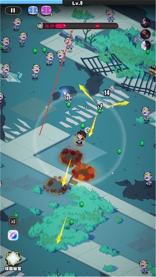 3、利用技能的范围伤害,高效清理僵尸群,积累等级经验,提升角色等级。