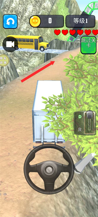 4、继续通过方向盘控制方向,避让道路上的其他车辆如校车,推进驾驶关卡的进度。