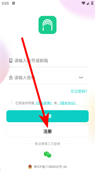 2、在摩尔智慧登录页面,点击注册,进入手机注册页面。