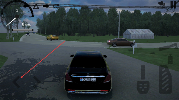 3、进入游戏驾驶场景后,操控左下角的方向按键,可控制车辆进行转向操作,以此调整车辆在道路上的行驶方向,避开其他车辆保持正常行驶。