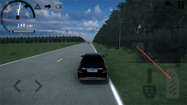 4、在驾驶过程中,点击右下角的油门踏板进行加速操作,当车辆速度过高时,点击右侧的刹车按键,可降低车辆的行驶速度。