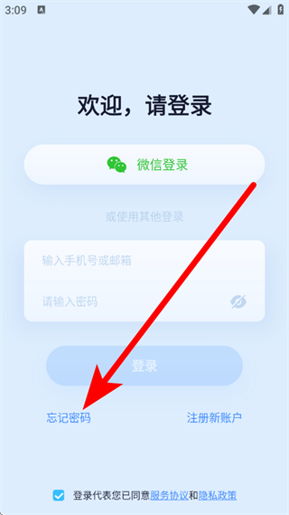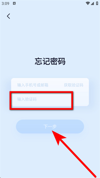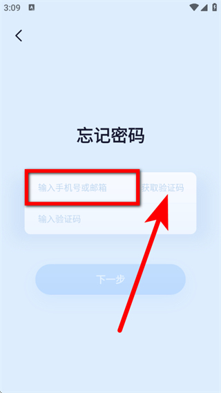 2、在忘记密码页面,输入手机号或邮箱,点击获取验证码。