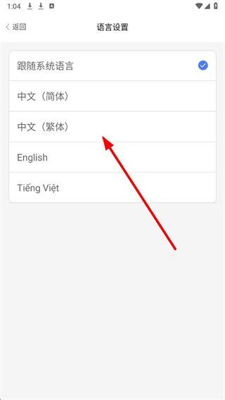 4、进入语言设置页面后,选择所需语言,即可完成app语言的修改。
