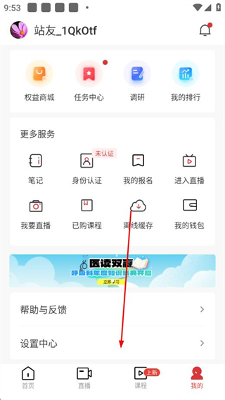 1、在医学界医生站的首页,点击底部我的选项,进入个人中心页面。