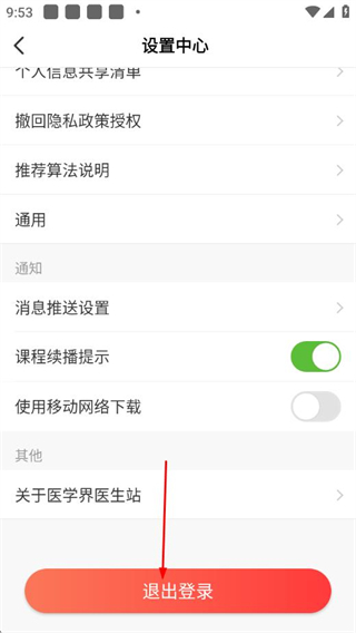 3、在设置中心页面底部,点击退出登录,即可完成账号退出。