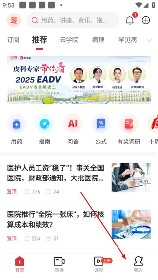 1、打开医学界医生站APP,进入时点击下方直播的标签。