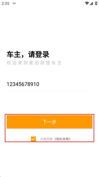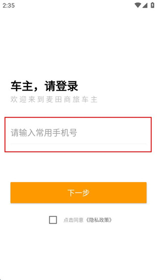 2、进入车主请登录页面,在输入框中填写常用的手机号码信息。