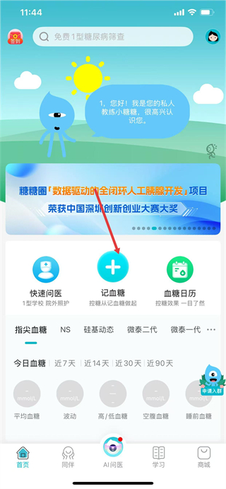 1、打开糖糖圈APP,点击底部导航栏AI问医,进入AI糖宝界面。