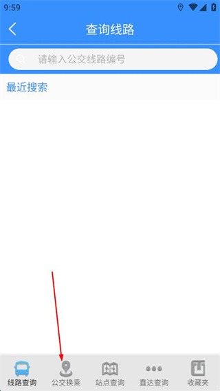 3、在查询线路页面,点击底部的公交换乘选项,切换至对应的换乘查询功能界面。