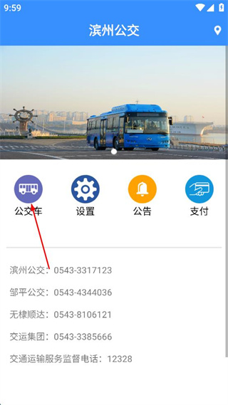 2、进入滨州公交主界面,找到页面中的公交车选项,点击该选项进入查询线路页面。