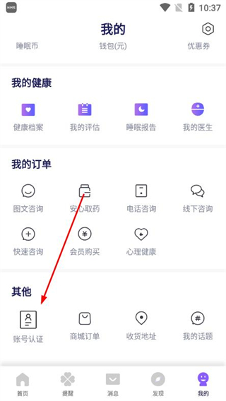 1、打开好睡眠365APP,点击底部导航栏的我的选项,进入个人页面。